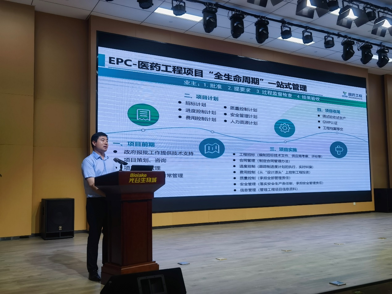 国药工程市场部总经理郑军结合国药工程丰富的EPC经验,充分分析了医药工程项目以EPC形式执行的优势。