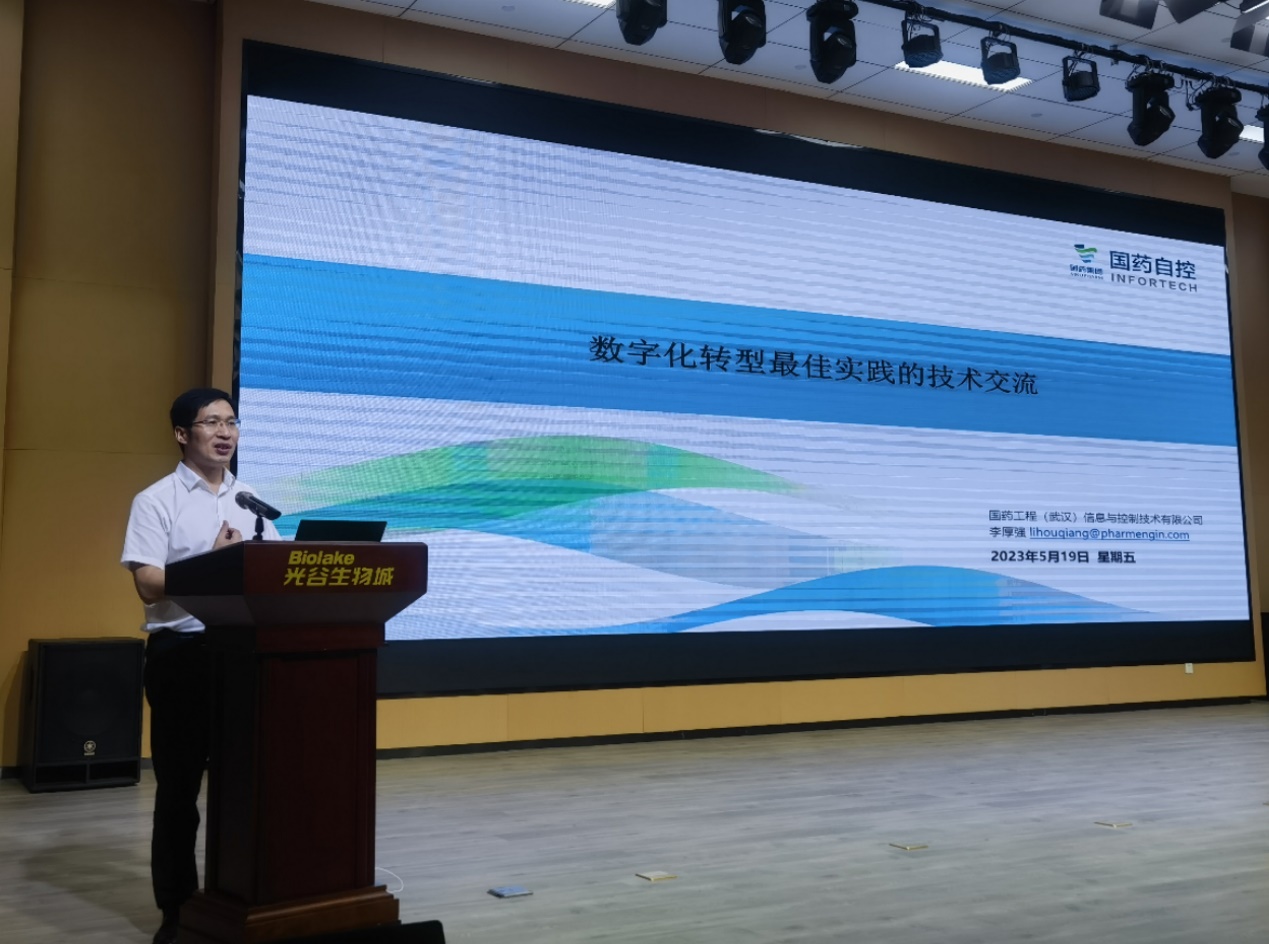 国药工程自控公司副总经理李厚强作了“数字化转型最佳实践”的技术交流,阐述了数字化转型的发展趋势,分析了行业数字化转型普遍存在的问题与风险,结合国药工程在制药数字化转型的最新理念与最佳实践,并通过典型案例的介绍,分享了具有国药工程特色的数字化转型设计与工程一站式解决方案。
