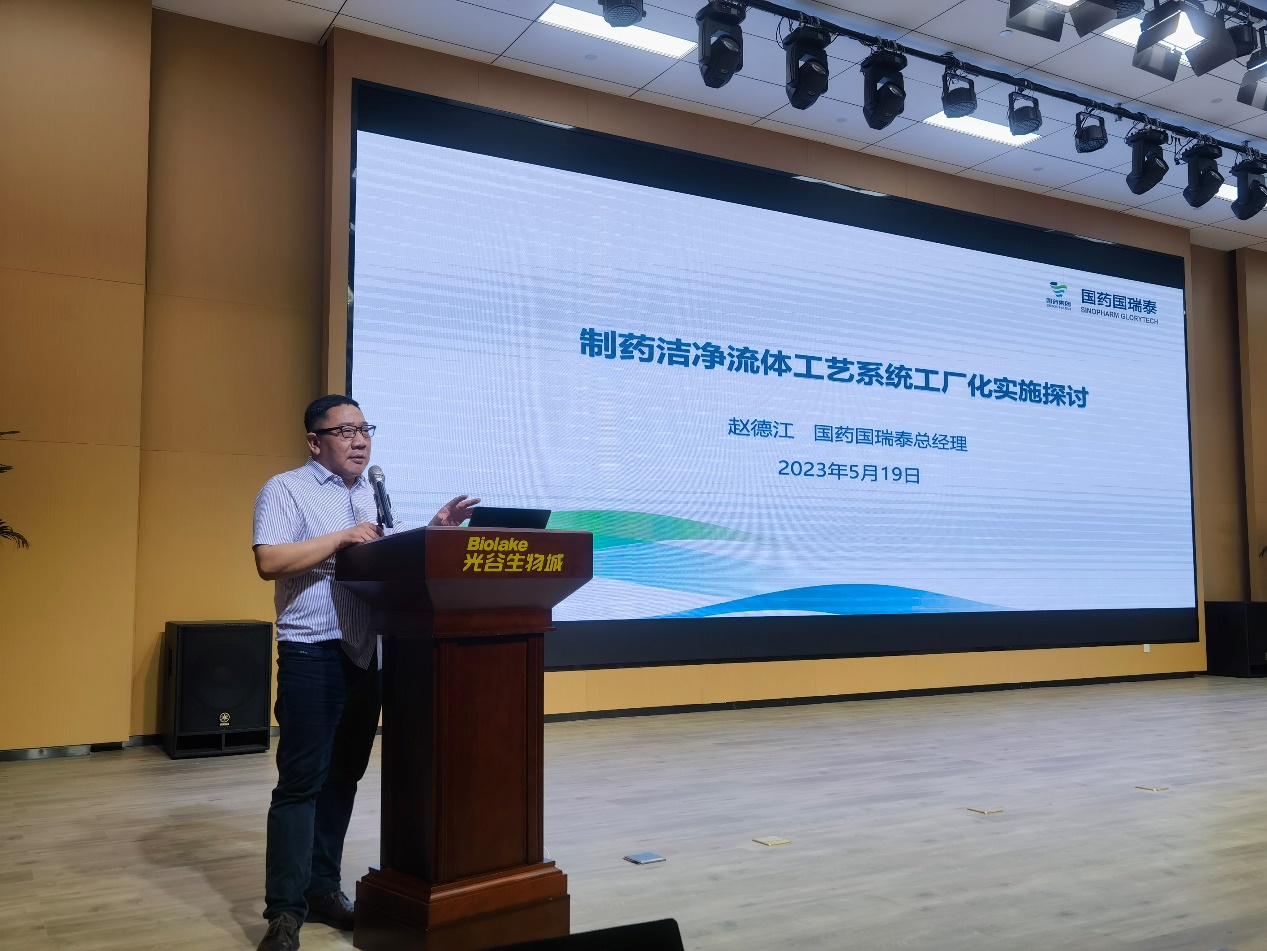 国药国瑞泰总经理赵德江作了“制药洁净流体工艺系统工厂化实施探讨”的交流。系统阐述了模块化工厂对生产工艺系统项目建设的多重优势。
