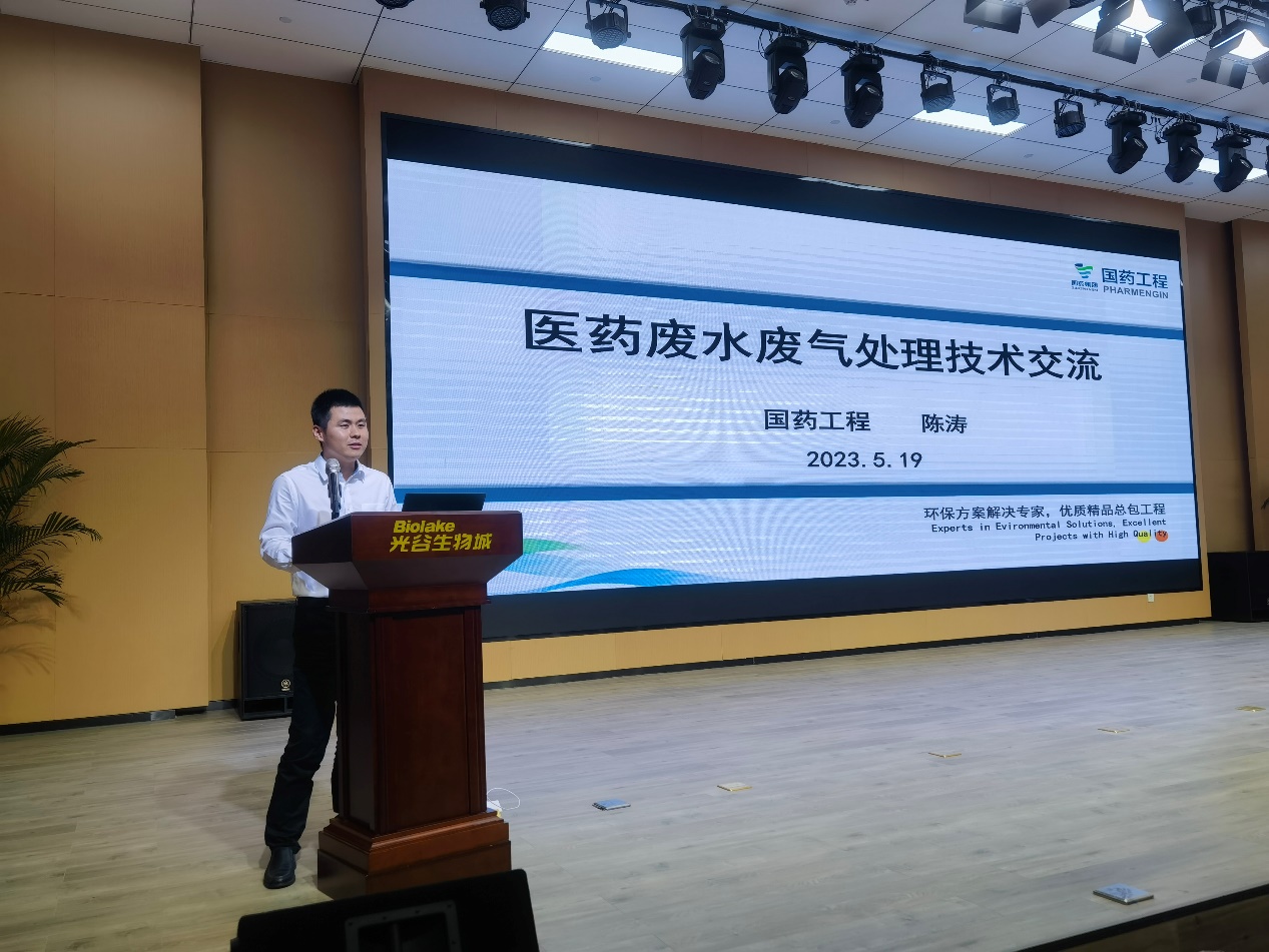 国药工程环保事业部项目经理陈涛作了“医药废水废气处理技术”的交流,介绍了国药工程环保事业部的业务模式和服务领域,对医药行业废水废气处理系统提出了全过程的解决方案,并站在设计及运行的角度深刻分析了环保项目技术难点。