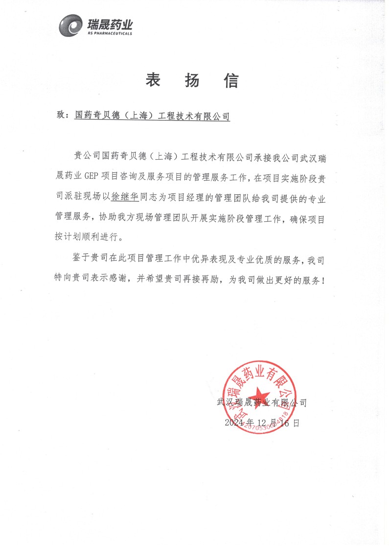 武汉瑞晟药业GEP项目咨询及服务项目