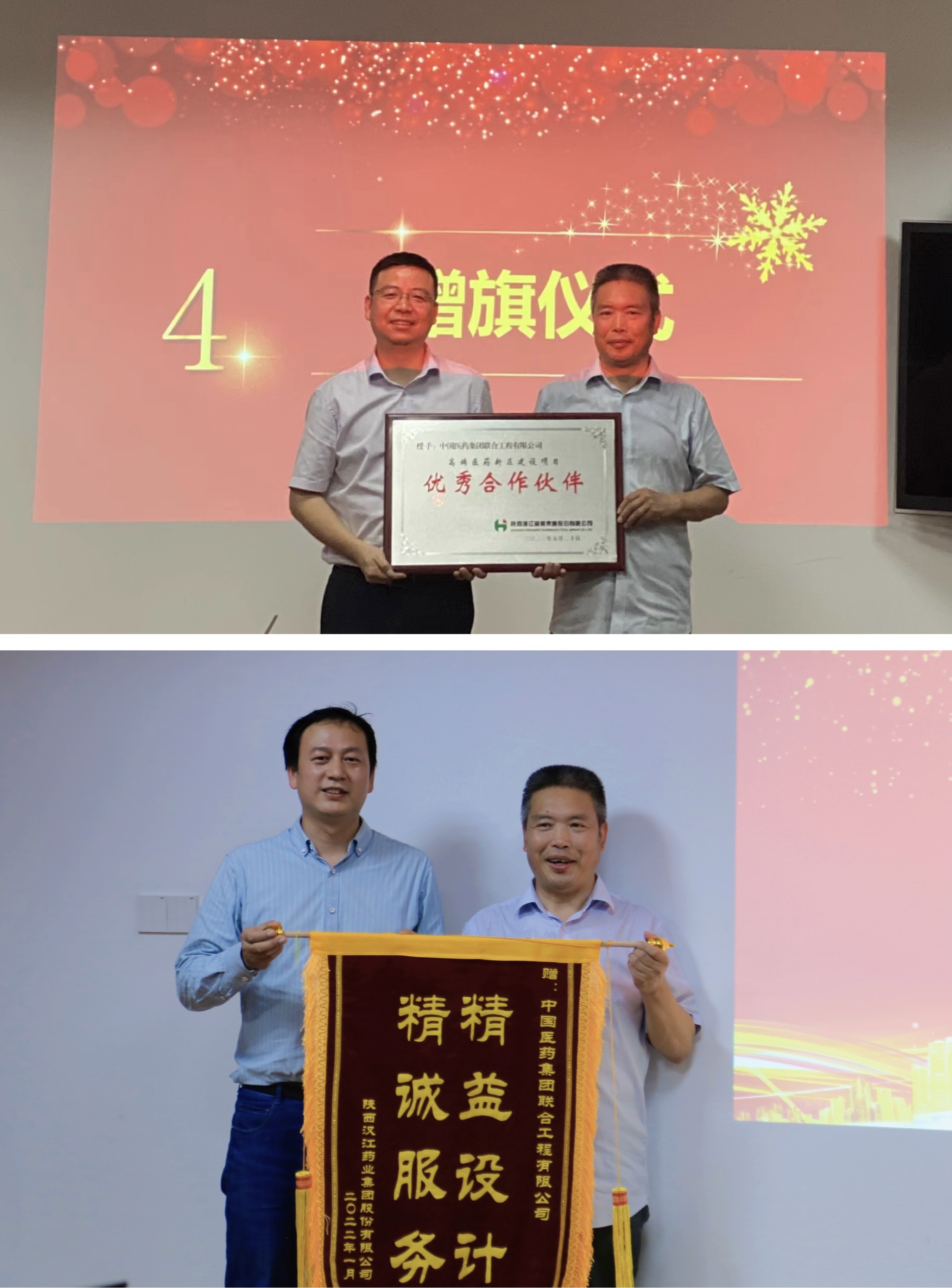 会上,汉江药业工程建设指挥部陈小文总监将一面写着“精心设计 精诚服务”的锦旗授予该项目设计组,对项目设计过程中国药工程提供的专业技术、五年来的热情服务给予高度肯定和由衷赞扬并授予“优秀合作伙伴”牌匾。