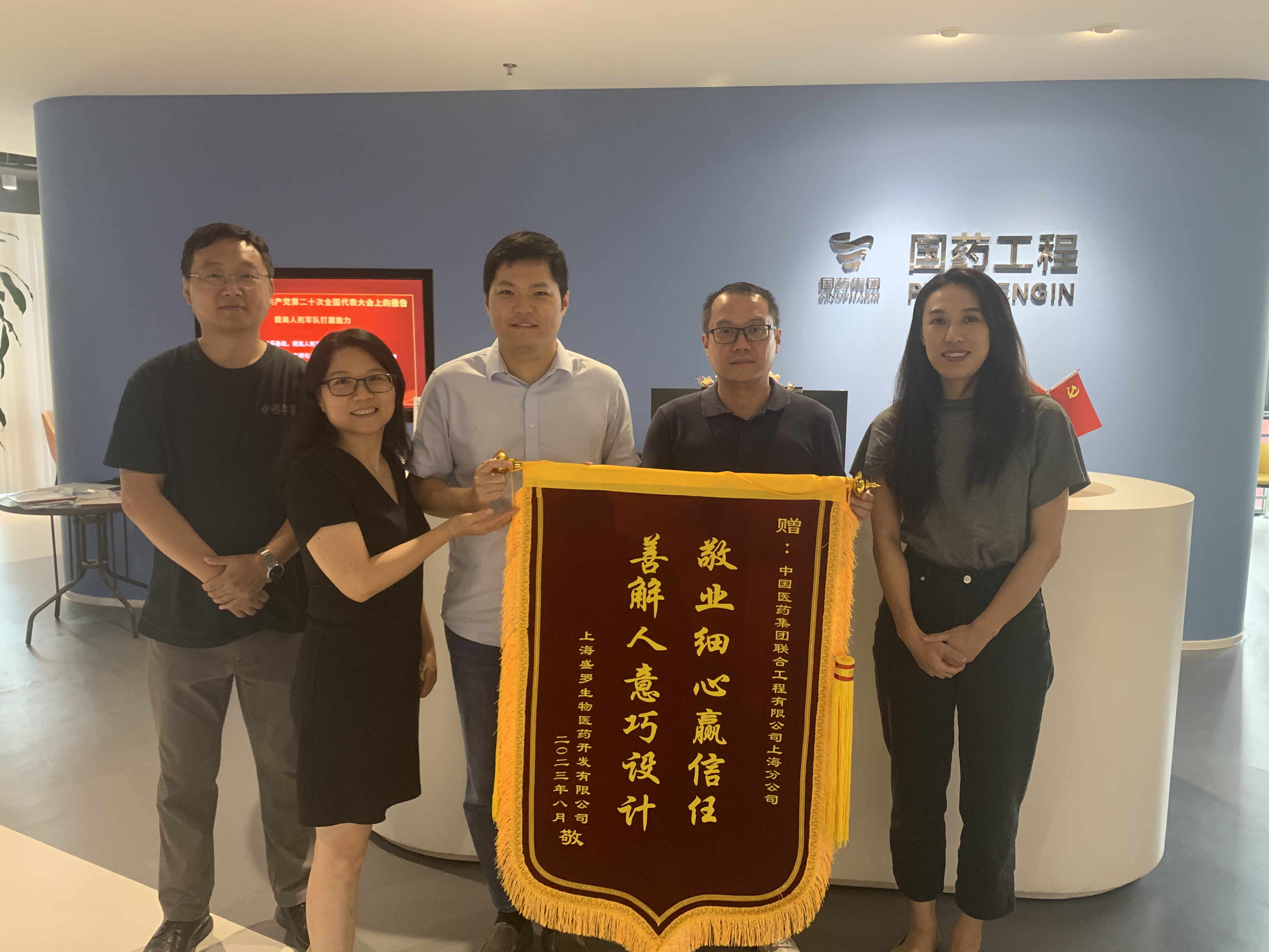 8月25日,国药工程上海分公司收到来自上海盛罗生物医药开发有限公司业主亲自送来一面“善解人意巧设计·敬业细心赢信任”的锦旗,这是对于国盛产业园项目团队的高度肯定。