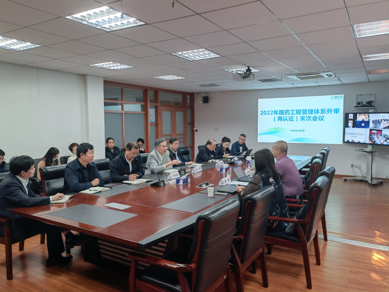 审核组对公司管理层、各部门、分公司以及2个工程项目进行全覆盖审核。通过审核,专家组一致认为:公司2022年质量、环境、职业健康安全管理体系持续符合认证标准且运行有效,同意推荐国药工程质量、环境、职业健康安全管理体系保持认证注册,并更新认证证书。同时,针对体系运行情况,审核组提出了部分意见建议。